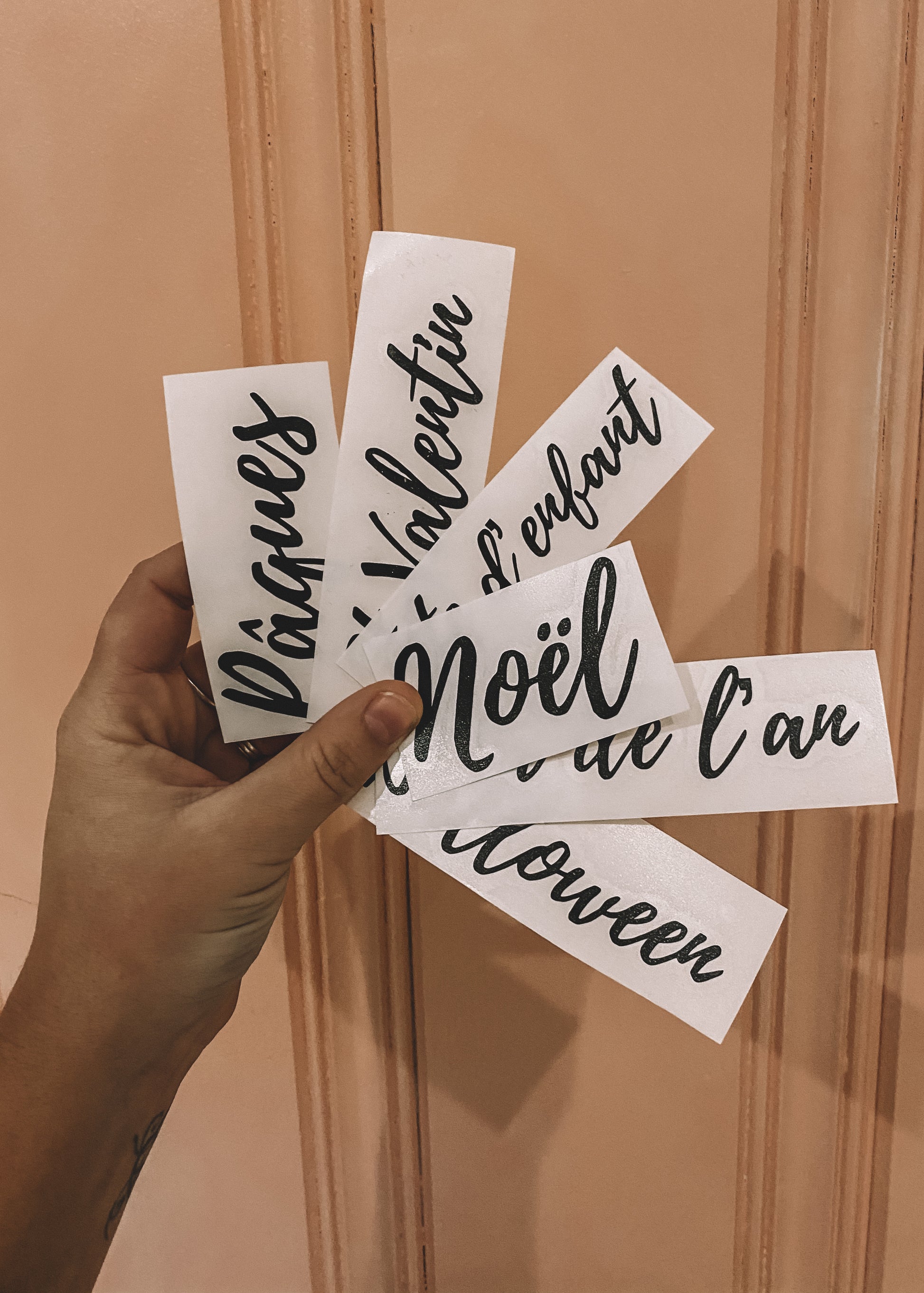Nos autocollants s’appliquent facilement sur une surface lisse.
