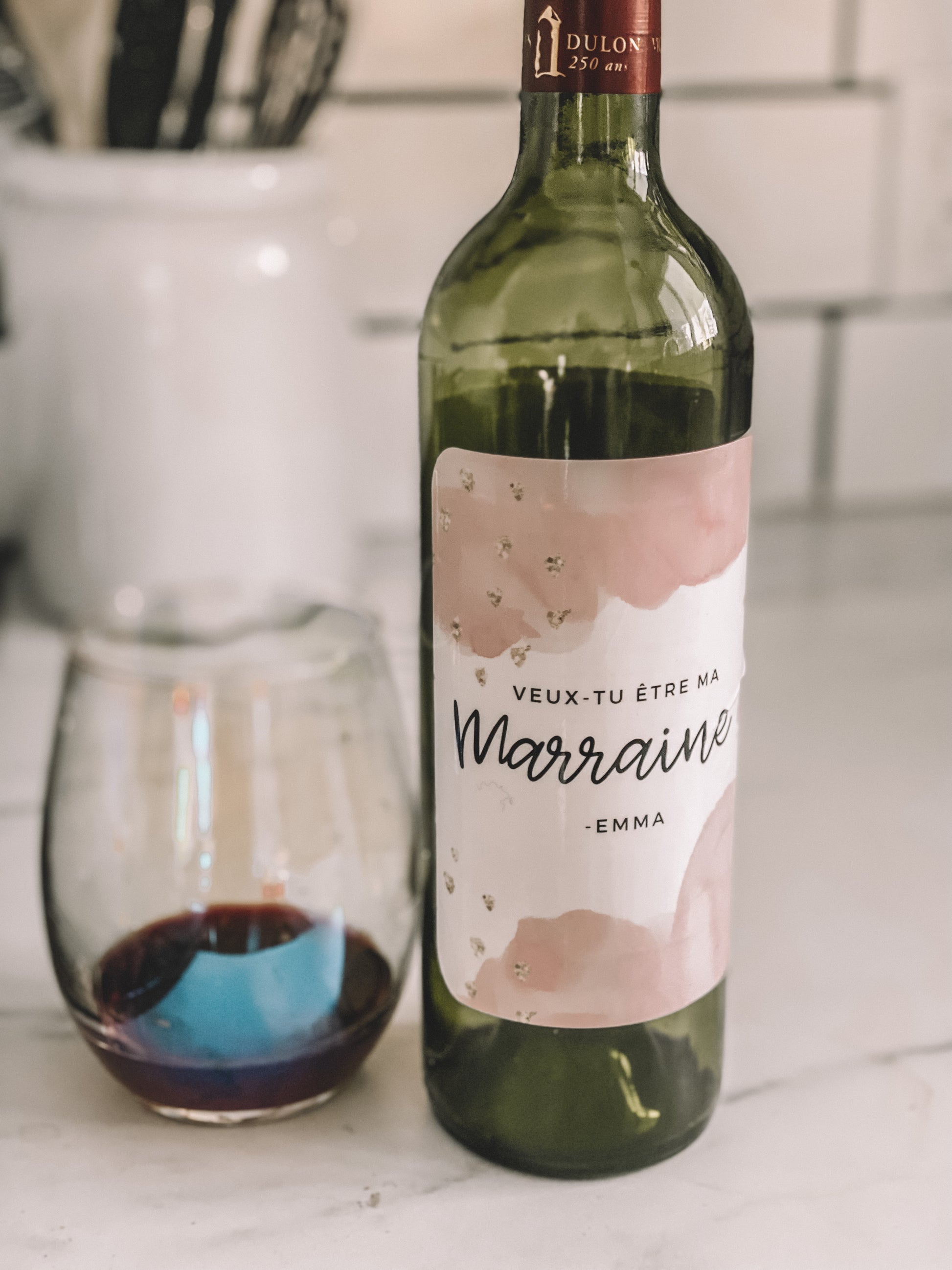 Étiquette à vin Veux-tu être ma marraine (personnalisé )